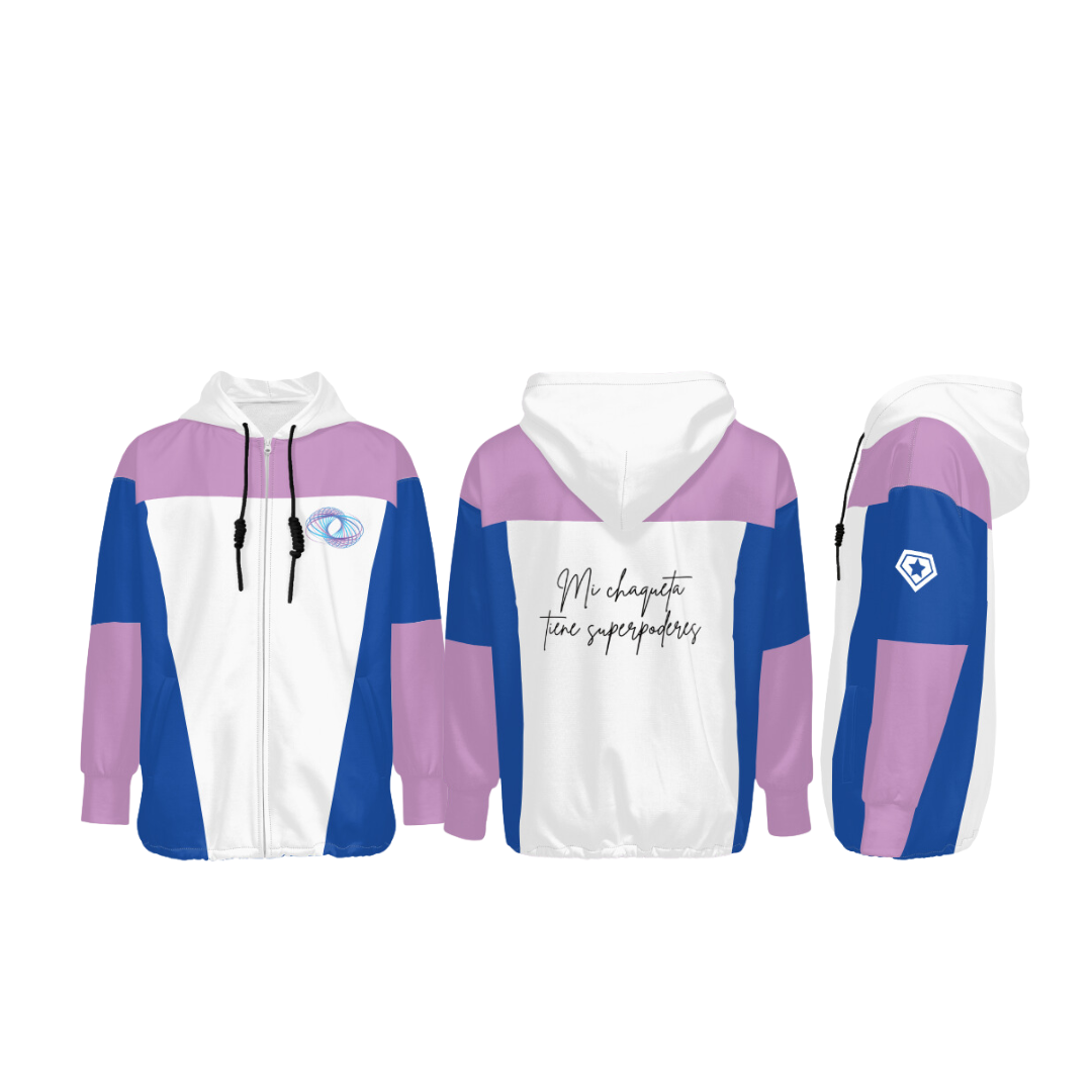 Esta chaqueta con cremallera es mucho más que una prenda, es tu compañera de aventuras. Con detalles únicos y un símbolo de superhéroes en la manga, está diseñada para recordarte la fuerza y confianza que llevas dentro. Su mensaje, lleno de actitud, te impulsa a enfrentar el mundo con determinación. Cómoda, elegante y cargada de estilo, es perfecta para quienes saben que tienen superpoderes. ¡Hazla tuya y deja tu huella! Tallas de la XXS a la 4XL. 92% polyester, 8% elastano, Cordón ajustable. Bolsillos delanteros. Capucha extragrande. Entrega en 3 semanas.