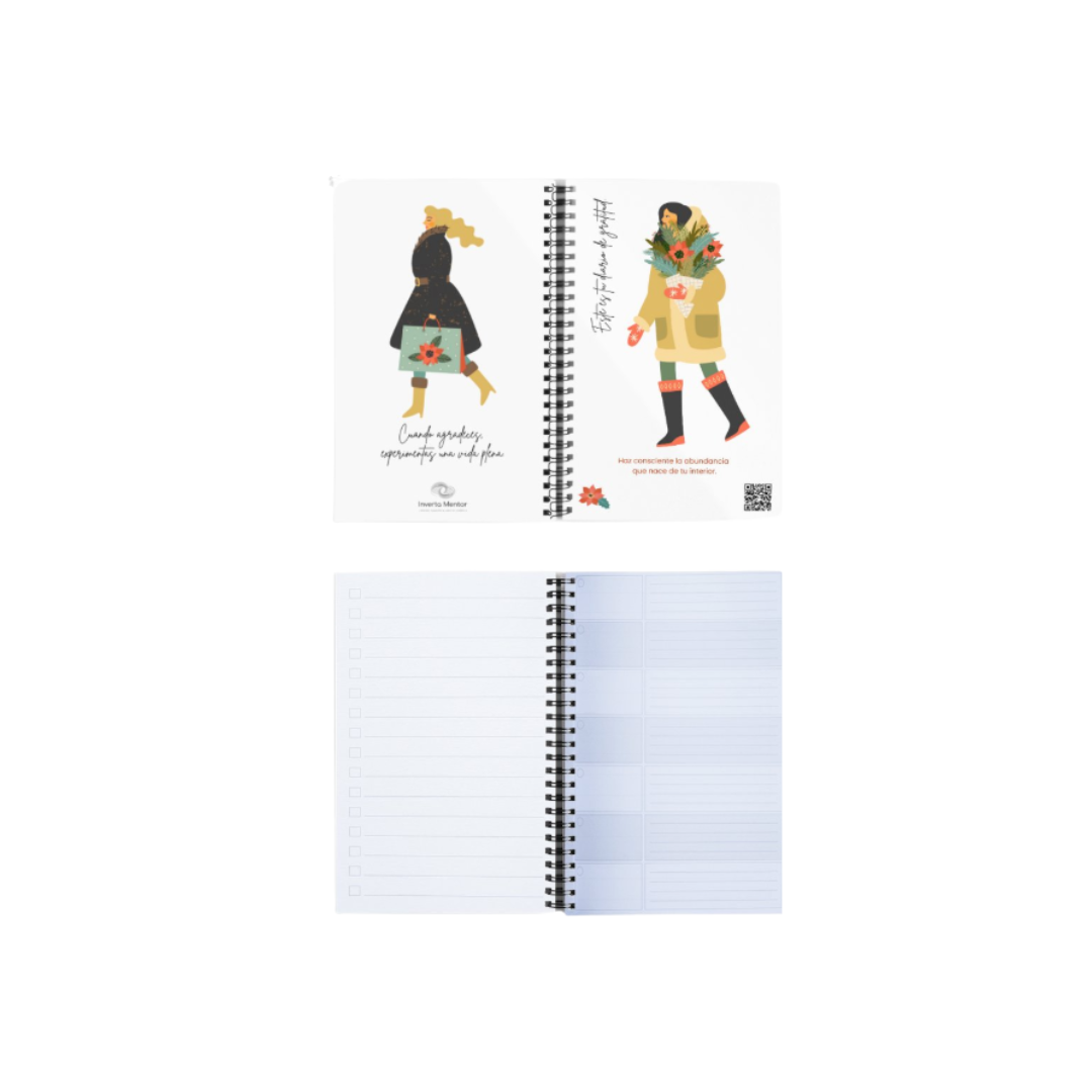 Este mini diario de gratitud es un espacio para abrazar la belleza de tus pensamientos y cultivar la abundancia interior que florece en ti. Con ilustraciones delicadas que evocan calidez y serenidad, la portada presenta a una mujer paseando en pleno invierno, sosteniendo un ramo de flores, mientras en la contraportada, otra mujer camina decidida con un maletín decorado con flores dibujadas. Está diseñado para acompañarte a reflexionar y encontrar gratitud en los pequeños grandes momentos del día a día. Su distribución semanal te permitirá resumir lo más valioso de cada jornada y seguir un camino hacia una mente más agradecida, plena y consciente. Además, contiene un paquete con pegatinas diarias para que puedas organizar mejor tus contenidos. ¡Empieza este viaje personal y deja que la gratitud ilumine tu vida! 80 páginas. Tamaño: 139 x 216 mm. Encuadernación en espiral. Entrega en 2 semanas, paquete de pegatinas diarias incluido.